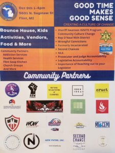 Saturday’s event will include a bounce house, kids’ activities, vendors and food. Local community organizations will be on hand including: addiction services, health services, Flint Soup kitchen, and church groups.